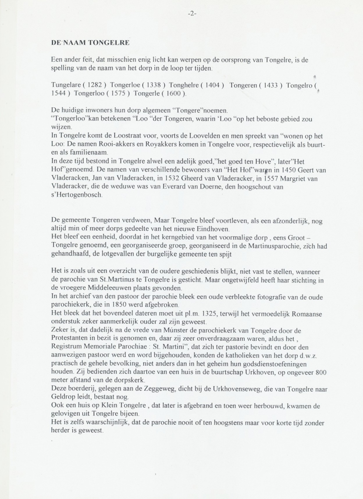 Een verzameling van geprinte blaadjes, krantenknipsels, andere knipsels etc. over de geschiedenis van Tongelre en andere wetenswaardigheden over Tongelre.