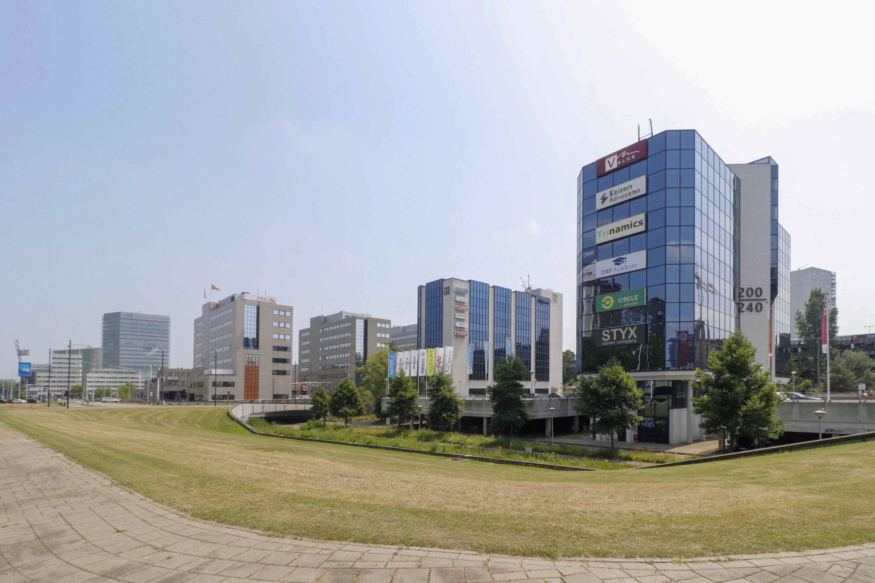 15038Het witte gebouw boven de schoorsteen is De Gruyter, de laatste winkel aan de Fellenoord. Rechts de [meer]