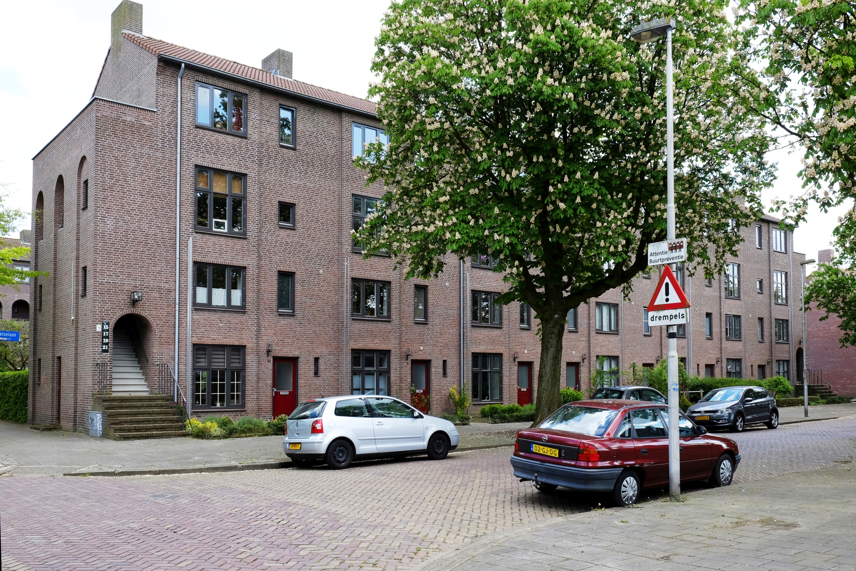 15038Het witte gebouw boven de schoorsteen is De Gruyter, de laatste winkel aan de Fellenoord. Rechts de [meer]