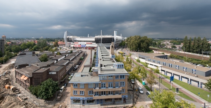 Panorama richting Strijp met het Temporary Art Centre (TAC), Ventoseflat en het PSV stadion