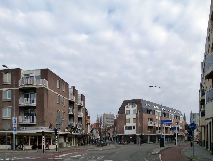 het begin van de Hoogstraat met links de hoek met de Mauritsstraat