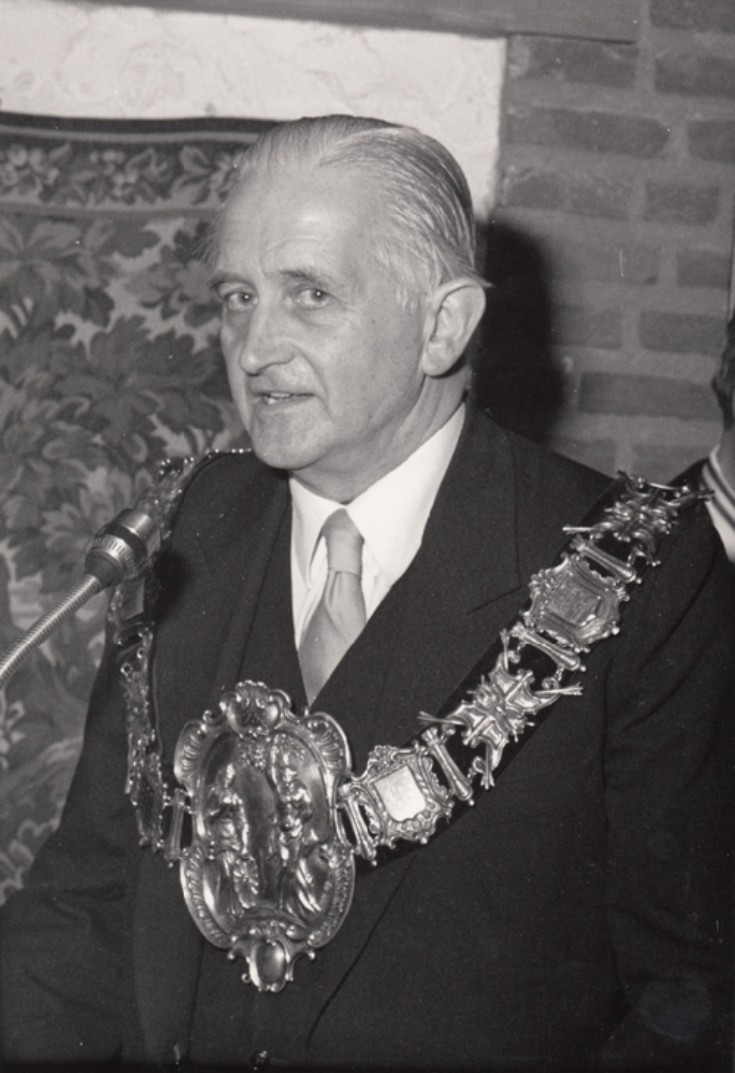 Het Ridderlijk Gilde van St. Sebastiaan Eindhoven. V.l.n.r.: Henri J. Verschure, Ferd. Schröder, Hub Smits, Henri van Kol, Jan P.M.Coolen, J.A.H. Rijke, Jan van Lieshout (koning), Johan P.F.Hege [meer]