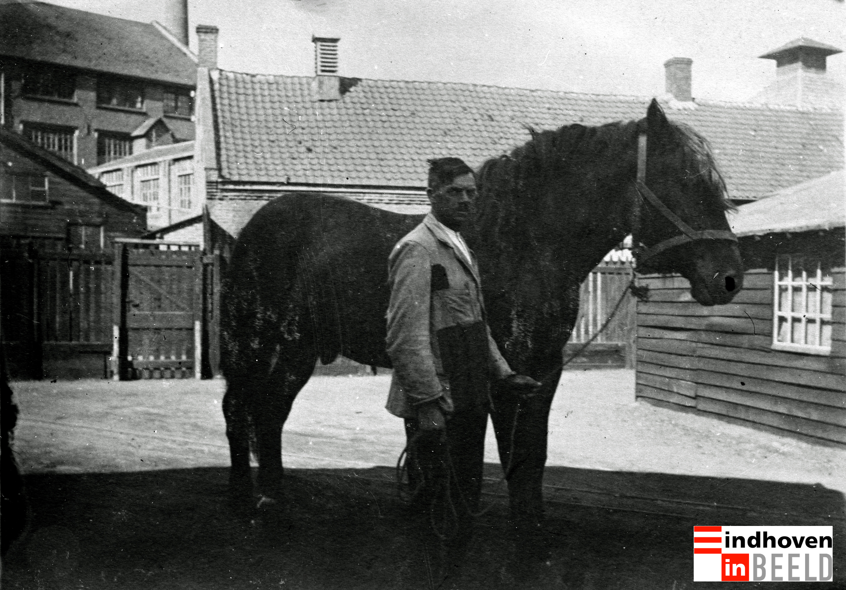 Locatie waarschijnlijk Fuutlaan. Op de achtergrond is het station met bijgebouwen te zien. T.o. Huize De Laak was een kort straatje dat leidde tot het spoorwegemplacement waar zware vracht opgehaald kon worden door Eindhovense ondernemers. Ik kwam daar als kind wel eens met de voerman die voor Caspar de Haan glas op kwam halen. Ik hoor nog het geluid van de paardenhoeven op de klinkers waarmee vele straten nog geplaveid waren. Ook werd daar een keer een walvis tentoongesteld; Het dode dier lag op een platte wagen van de NS.