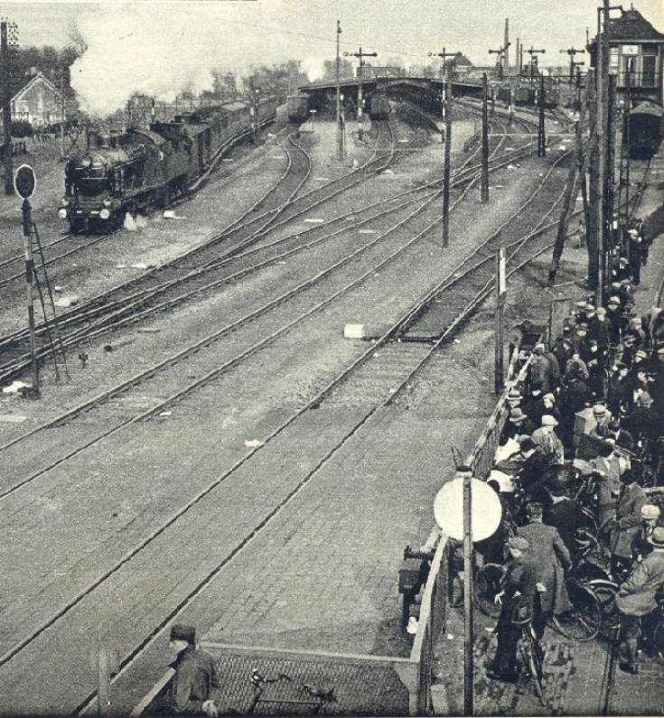 Deze foto is genomen vanaf de Stationsweg, ongeveer vanaf de brug over de Dommel. Ik weet me nog goed te herinneren dat er rechts van de weg tot aan het spooremplacement deze leegte was. Op de sporen [meer]