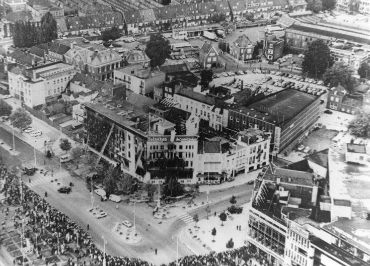 18 Septemberplein met zicht op Philipsfabrieken en Lichttoren.