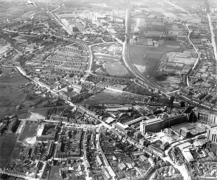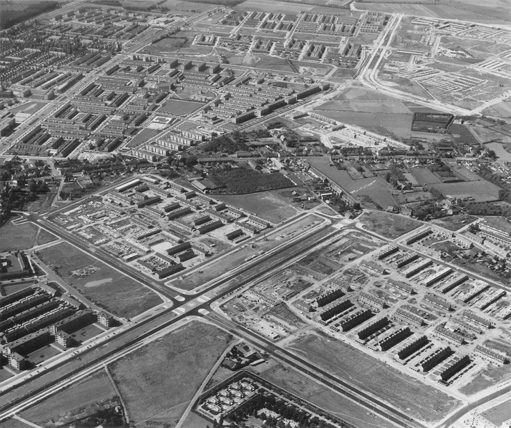 O.a. een mooi overzicht over het Philpsdorp met Sportpark. (Aviodrome 005385zr)