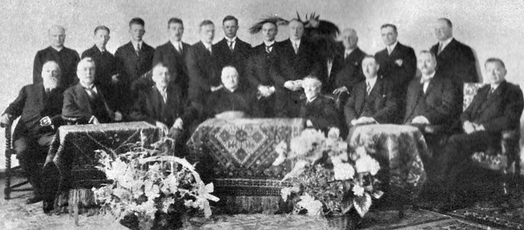 De foto is van vóór 1920. De toren zou pas na de brand van 1936 worden gebouwd. Op de foto is men wel bezig met werkzaamheden aan de voorgevel. De klok ontbreekt nog. De kerk staat nog [meer]