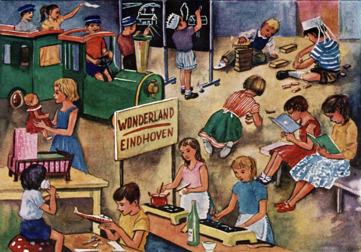 Wonderland in de Philips Jubileumhal was in 1960 van 30 juli t/m 27 augustus. Aan die treintjes heb ik nog goede herinneringen. Je voelde je heel wat met zo'n pet op. << video ^21 geeft [meer]