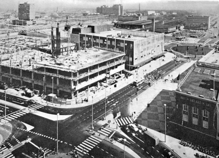 Het Goederen Distributie Centrum in aanleg. Rechts Philips Acht. De twee bomen bij Van der Heijden Logistics staan er nu nog!