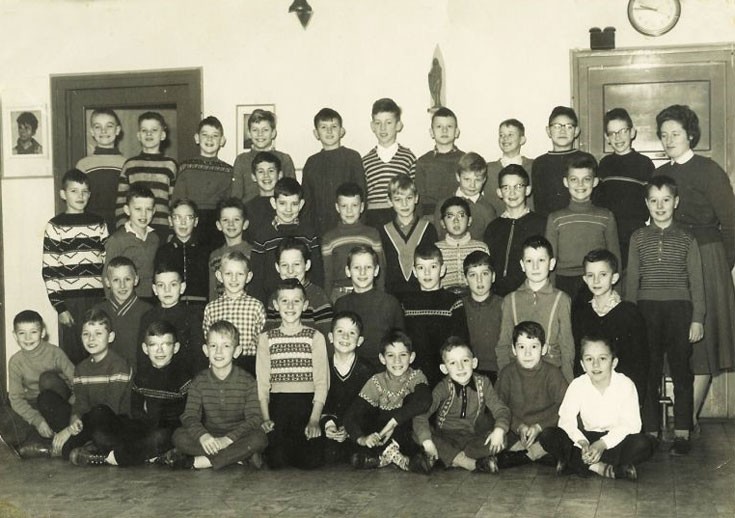 De zesde klas van meneer Rutten in 1958. Bovenste rij v.l.n.r.: H. Visser, Jos Linsen, Rinus van Gastel, Gerard Verhees, Ad van der Heyden, W. van der Meiden, Adri v.d. Einden, Peter Segers, S. van Ge [meer]