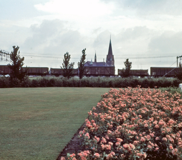 Links gaat de Bleekstraat over in de Nachtegaallaan. Rechts van de gasketel zien we de kerk van St Antonius van Padua van het Villapark.