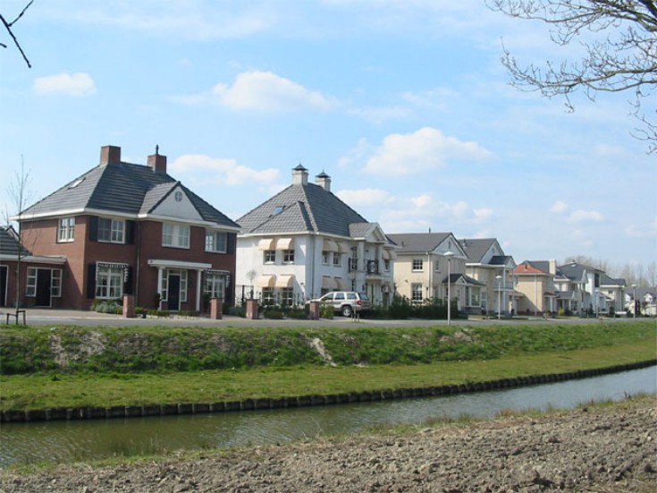 Vanuit de Pluvierlaan kijken we op de woningen in de Lijsterlaan.