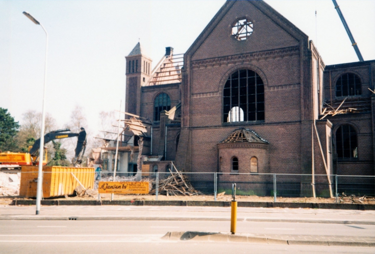 Het torentje werd gered. Het witte gebouw op de achtergrond is inmiddels ook afgebroken.