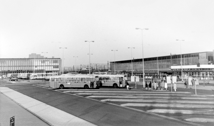 Het hoofdpostkantoor aan het Stationsplein, in gebruik genomen in 1961. De foto is uit de jaren zestig. Hier staat nu het Student Hotel.