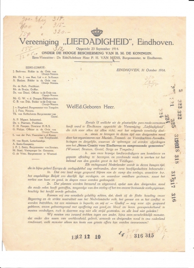 Bedelbrief van de "Vereeniging LIEFDADIGHEID", van 31 oktober 1914