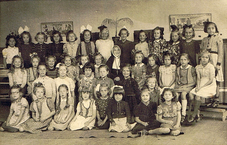 Klas 3 van de RK Meisjesschool in de Houtstraat. >>>Grote genummerde versie toegevoegd. (red.)<<< 1 Ine de Bruin, 2 Corrie van Hest, 3 Titia ?, 4 Treesje Thomassen, 5 Gonnie Kl [meer]