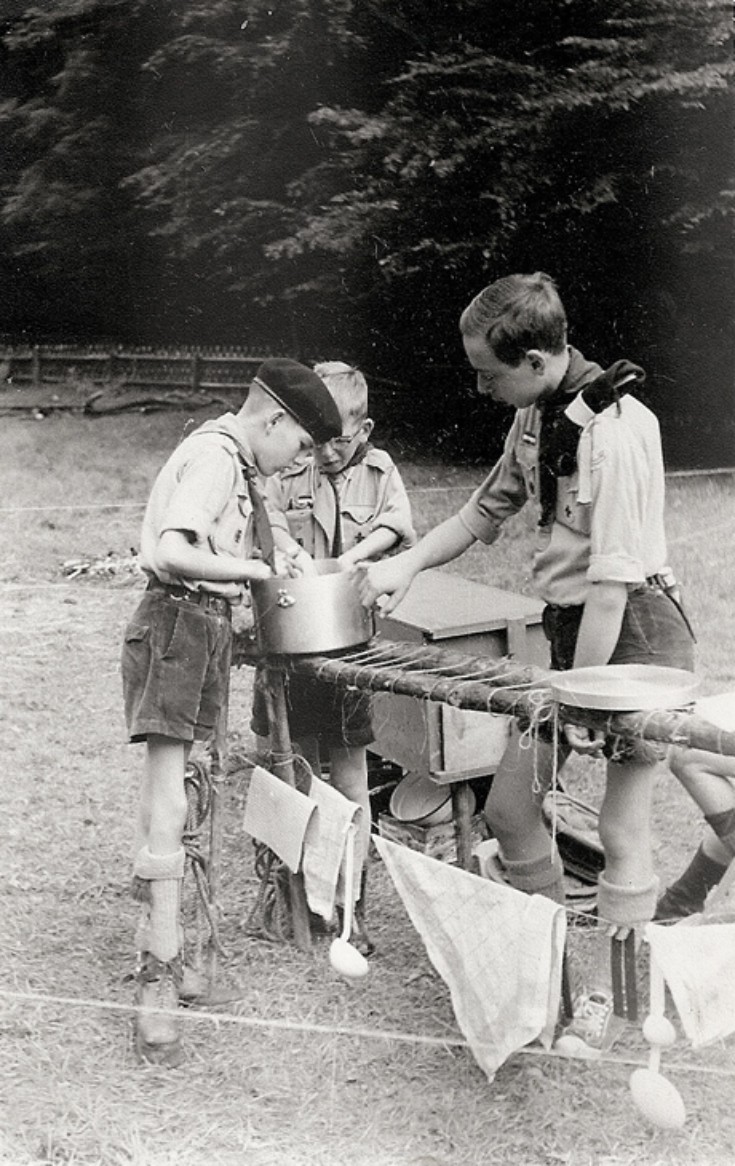De foto is genomen in 1963 tijdens een weekendkamp in de blokhut aan de Luikerweg te Valkenswaard. Op de foto de installatie tot verkenner van Pieter Seuntjens uit Valkenswaard en die van mij. De name [meer]