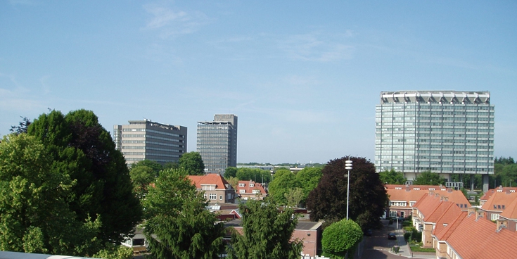 De drie enorme gebouwen aan de Boschdijk ter hoogte van de wijk de Barrier. het middelste gebouwis het voormalig hoofdkantoor van Philips. Rechts Philips Nederland.