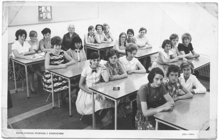 St. Anna Huishoudschool, juli 1964. Met aan de tweede tafel Marjo van der Schoot een zusje van Trea Dobbs en ikzelf in het midden. Veel namen ben ik kwijt, maar misschien dat iemand anders nog namen w [meer]
