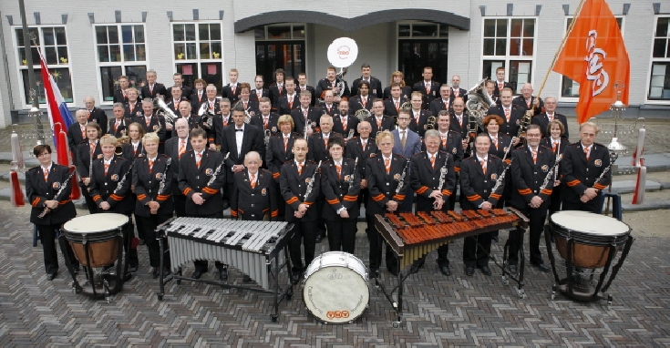 Hier brengt de harmonie een aubade op koninginnedag bij de Orangerie (een tijdelijk verzorgings/verpleeghuis) in Blixembosch. Voor de eerste keer in het nieuwe uniform op straat. [meer]