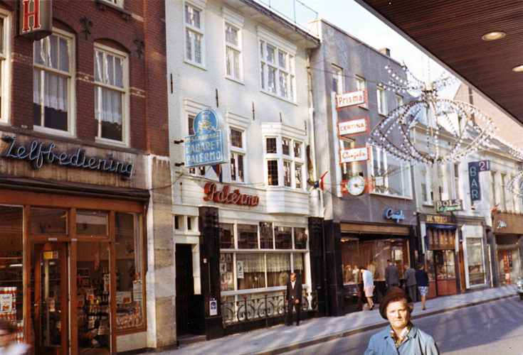 Links de Edah, daarnaast de nachtclub Palermo, juwelier Canjels en een slijter. Dan de 21 bar en de wolwinkel van Zijlstra