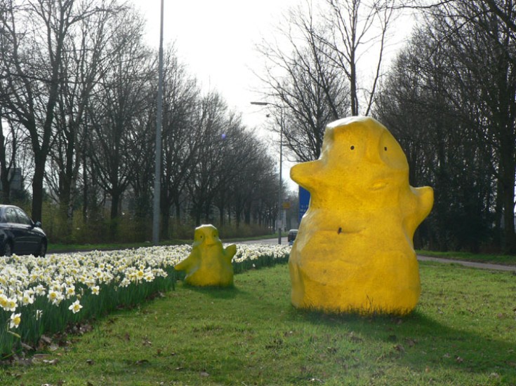 Als je vanuit Son via de Eindhovenseweg Woensel binnenrijdt wordt je bij de rotonde door deze twee vriendelijke spookjes begroet.
