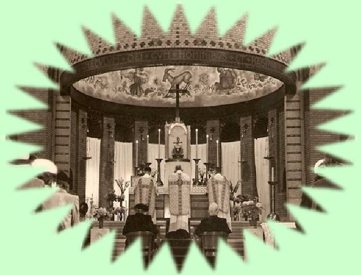 Interieur van de Poeijerse Kerk. Heilige Mis voor echtpaar Schampers-Camps. Wij noemden het "'t klein kerkje".