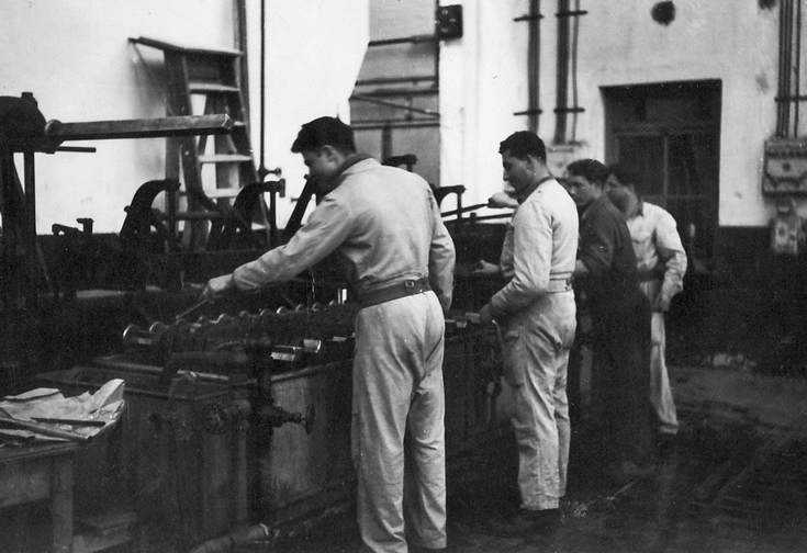 Een oude foto van een sigarenfabriek, maar welke, waar en wanneer? Ik weet alleen dat links op de eerste rij met donkere lange jas onze opa staat: Arnold (Nolleke) van den Berk