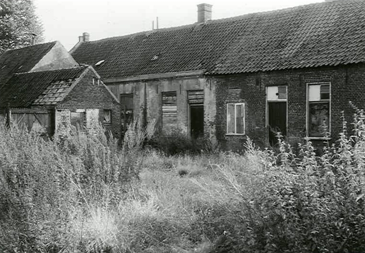 Foto richting Gestelsestraat en Hoogstraat. Oktober 1966, vlak voor de sloop. De eerste twee huisjes, nummer 5 en 7, zijn al dichtgetimmerd.