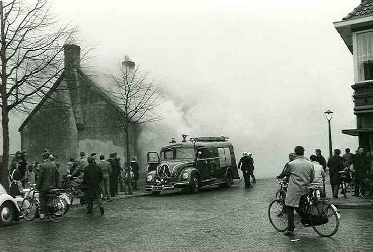 Maart 1965. Brand in de niet meer bewoonde huisjes Ploegstraat 5 en 7.