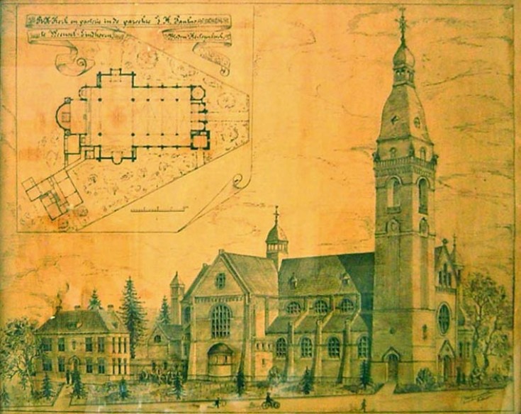 Deze tekening van Architect Groenendael heeft altijd achter in de gesloopte Pauluskerk gehangen. Deze originele tekening uit 1923 in oostindische inkt op papier, vertoont de kerk met toren. Bij deze t [meer]