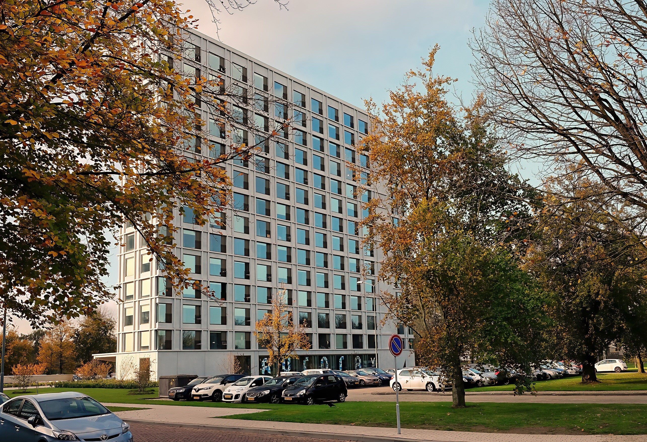 Woongebouw Aurora op de De Lampendriessen op de TU/e. Het is een van de vele woongebouwen voor studenten van zowel TU/e als Fontys, gebouwd in de jaren '20 van de 21e eeuw om de groeiende stroom s [meer]