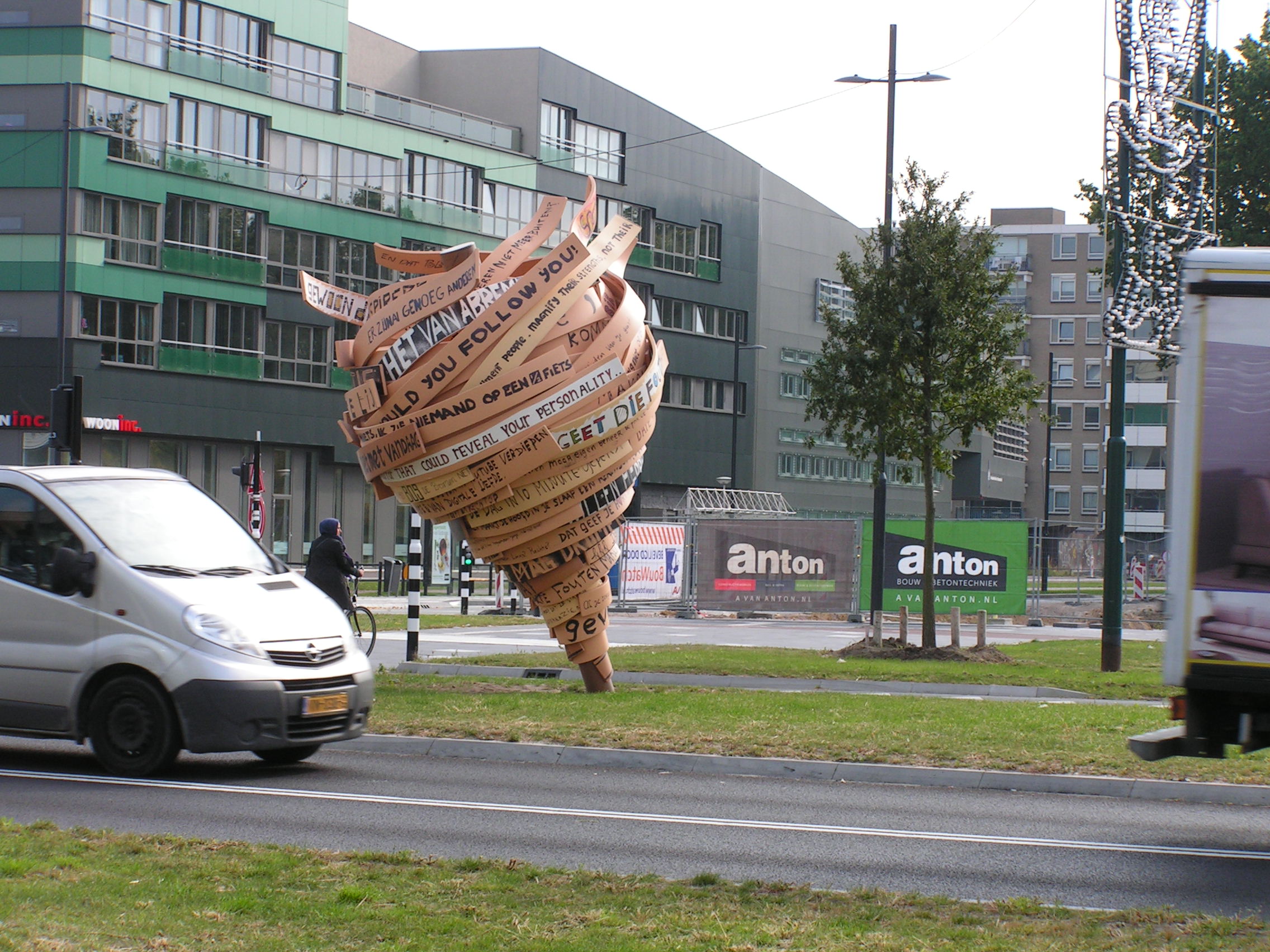 Deze Mondriaan was op vaderdag, 9 mei, een van de levende standbeelden in het Winkelcentrum Woensel. Zie ook o.a. de foto's #56274, #56275, #56277 en #56495. (Red.)