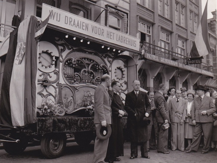 De foto is waarschijnlijk gemaakt bij de ingebruikname van dit draaiorgel. Dit gebeurde op 5 mei 1951, gelijktijdig met de start van de Philips jubileumfeesten. Dit orgel klonk echter zo vals dat het [meer]