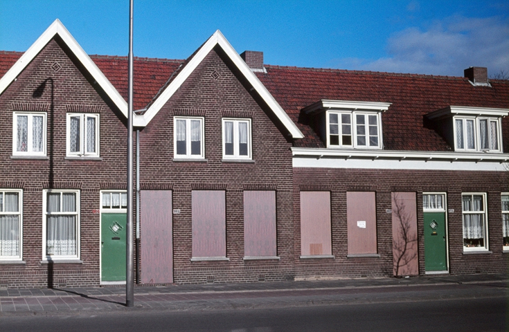 Spinnerstraat 57-59. Op de achtergrond flats aan de Montgomerylaan.