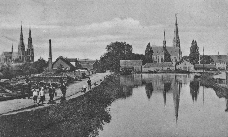 Tussen de tweede en derde boom staat een dame met hoed op bij een fiets. Op die fiets zit, ongetwijfeld voor de foto, even een kindje. De dame is vroedvrouw mevrouw Prins-Vels. De foto is in 1905 gema [meer]