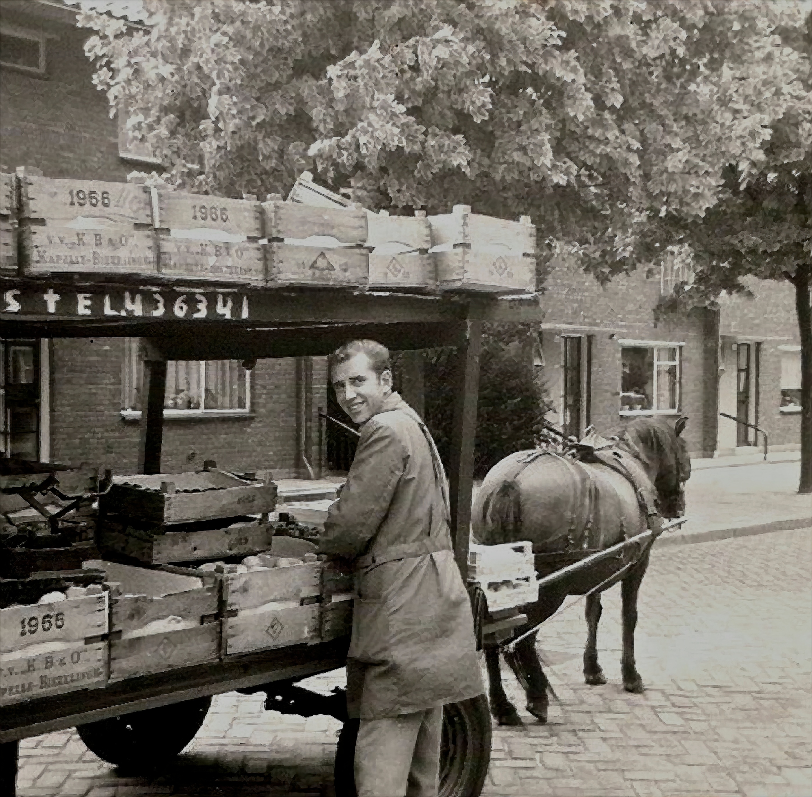 In 1967 was dit nog een 'normaal' beroep. Met paard en wagen met groente en fruit langs de deur. Deze foto van Gruunteboer Rinus Rooijakkers uit de Pastoriestraat, aan het venten in Strijp in [meer]