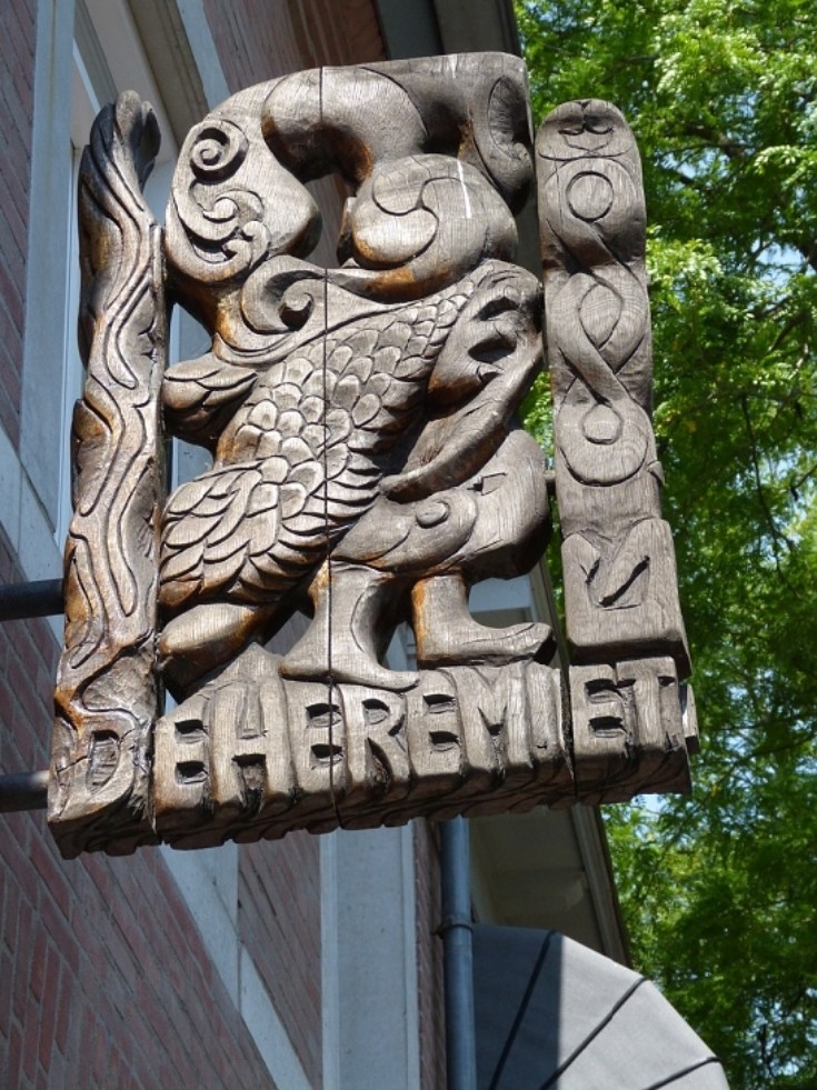 De Bergen. Bergstraat. Het prachtige "uithangbord" van boekhandel De Heremiet.