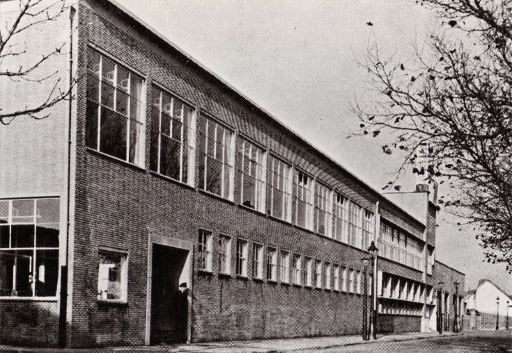 Een van de oude DAF-gebouwen aan het Burghplein. Deze fabrieksgebouwen werden rond 1990 gesloopt.