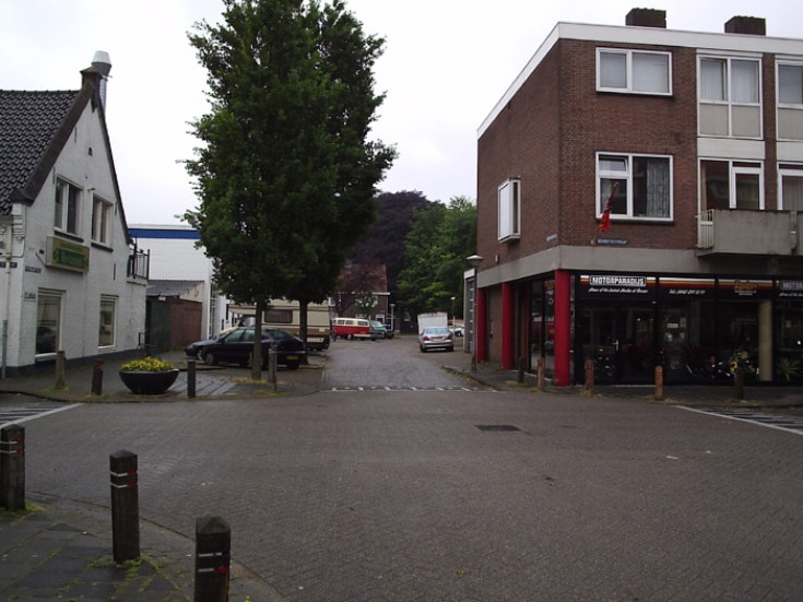 Rechts de Friezenkampstraat, links de Schootsestraat. Op deze hoek zit nu Djawa, ind.rest, zat vroeger in de Keldermansstraat. In dit pand zat vroeger, jaren 50, slager Achten en weer later een kippen [meer]