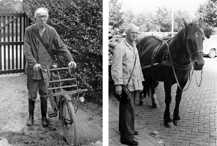 De Achtse groenteboeren. Links Frans Kranen (overleden in 1996) en rechts Jan Kranen (overleden 1988). Foto's genomen in augustus 1974.