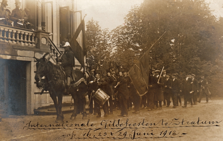 Op 16 juni 1912 bestond het St. Jorisgilde Stratum 400 jaar (merk op: in 2012 dus 500 jaar!). Op de foto trekt de feeststoet over de Stratumsedijk.