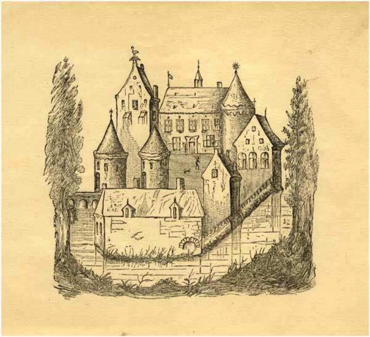 Reconstructietekening van het kasteel van Eindhoven naar de prent van Frans Hogenberg. (RHCe 0023877)