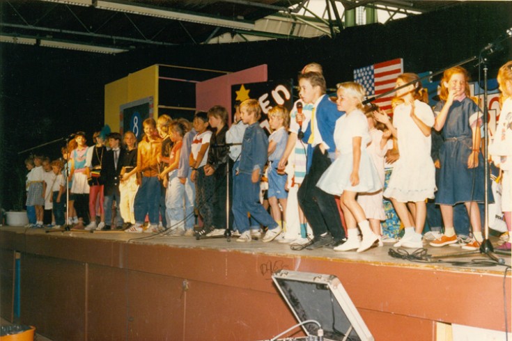 Leerlingen van de openbare school 't Karregat treden op in de kuil van dit gebouw. Het was de laatste schooldag voor de grote vakantie in juni 1987. Hier zingt een gedeelte van de leerlingen: &quo [meer]
