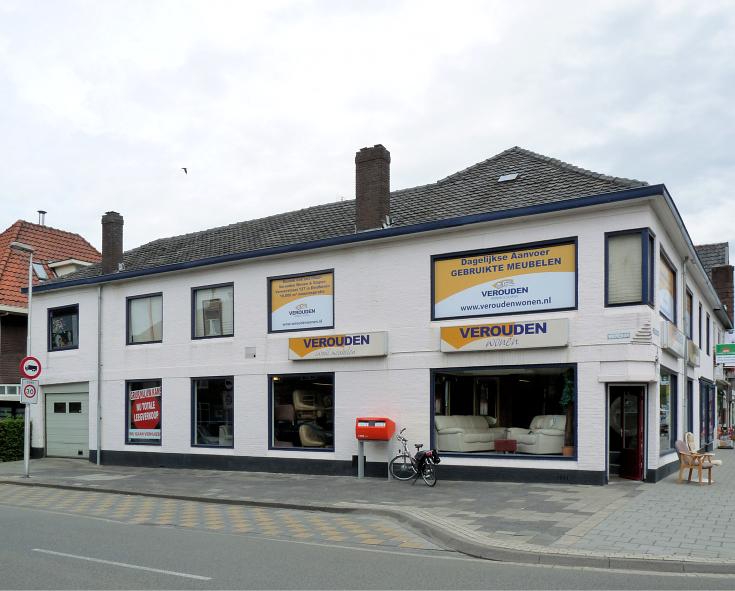 De meubelzaak van Verouden op de Tongelresestraat, gezien vanaf de Valklaan.