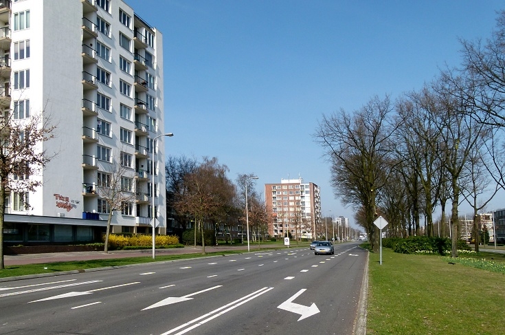 De linker rijbaan, richting Winkelcentrum Woensel, gezien vanaf de kruising met de Europlaan.